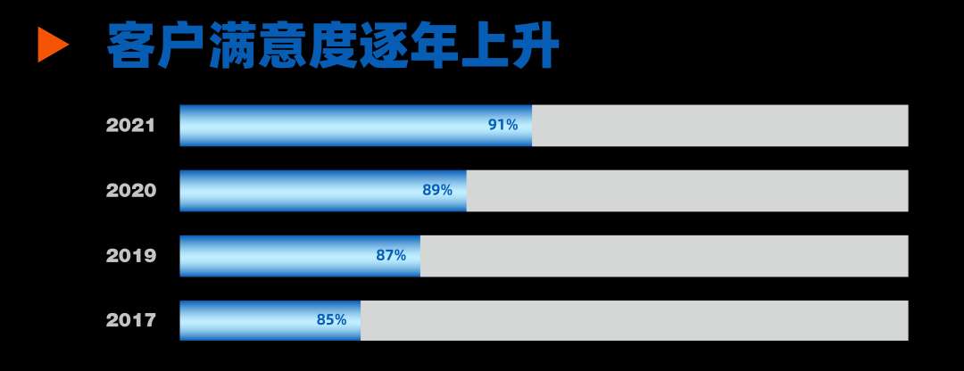 据第三方机构的客户满意度调查,由于北部湾港近年来服务质量不断提升,客户满意度从2017年的85%上升到2021年的91%,北部湾国际枢纽海港的影响力、竞争力进一步提升。