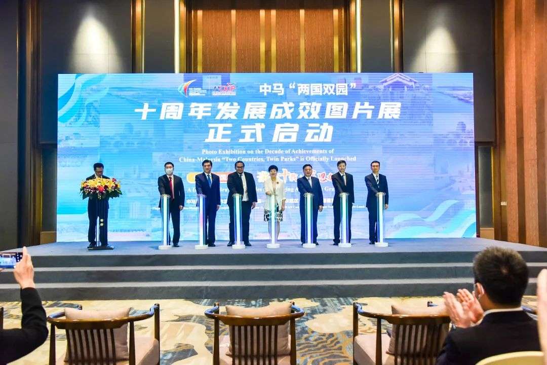 当天,中马“两国双园”十周年发展成效图片展启动。蔡丽新、李延强等出席并参观图片展。