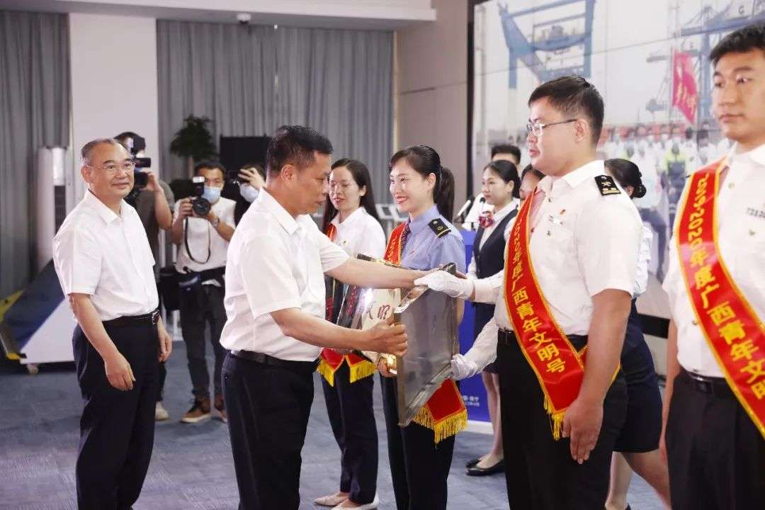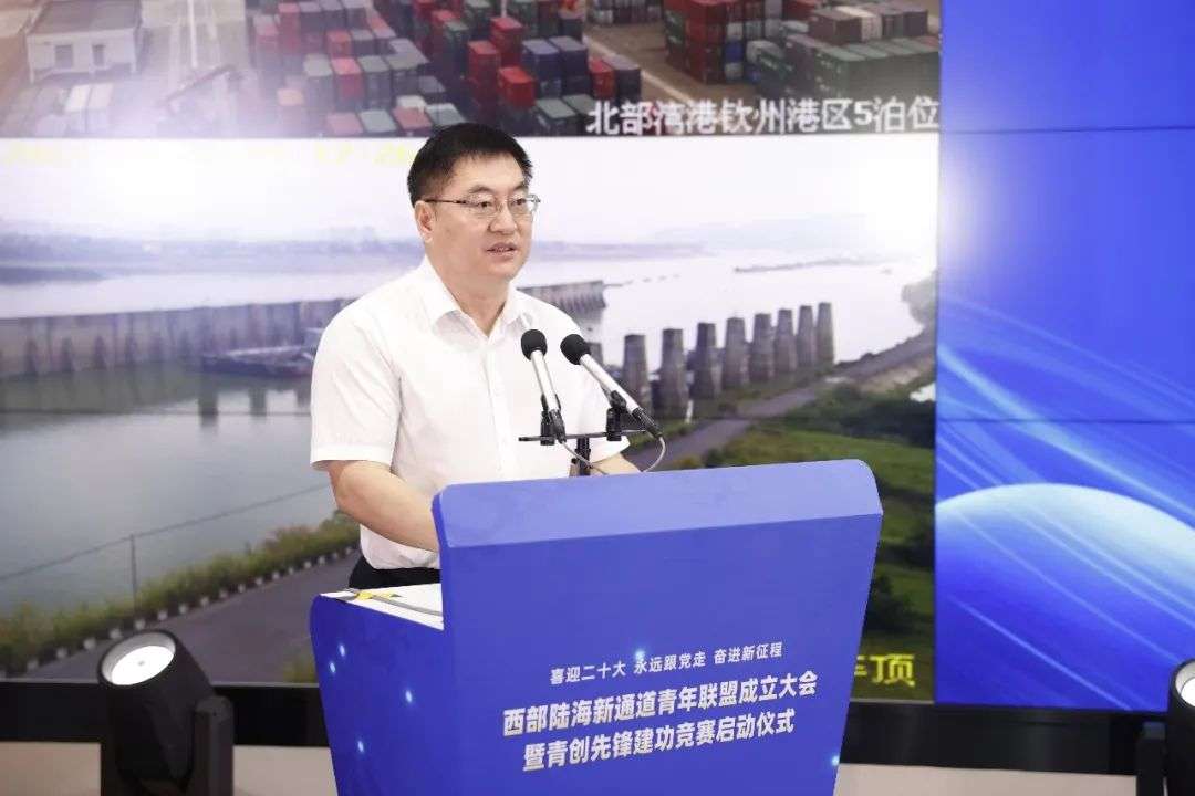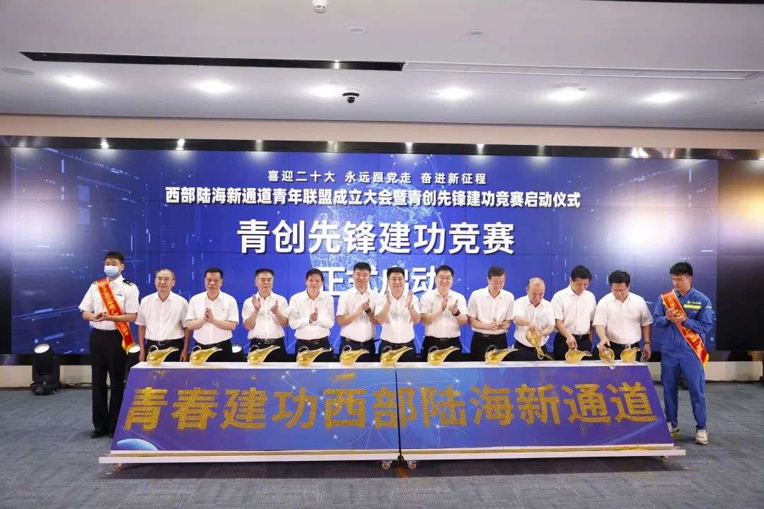 4月28日,区内外24家厅局单位、央企、国企团委以及青年组织,在北部湾航运中心共同成立西部陆海新通道青年联盟,启动青创先锋建功竞赛,探索通过“共商、共建、共享”模式,激励青年积极投身西部陆海新通道发展主战场,充分发挥生力军和突击队作用,助力国家、自治区重大战略跑出“加速度”。