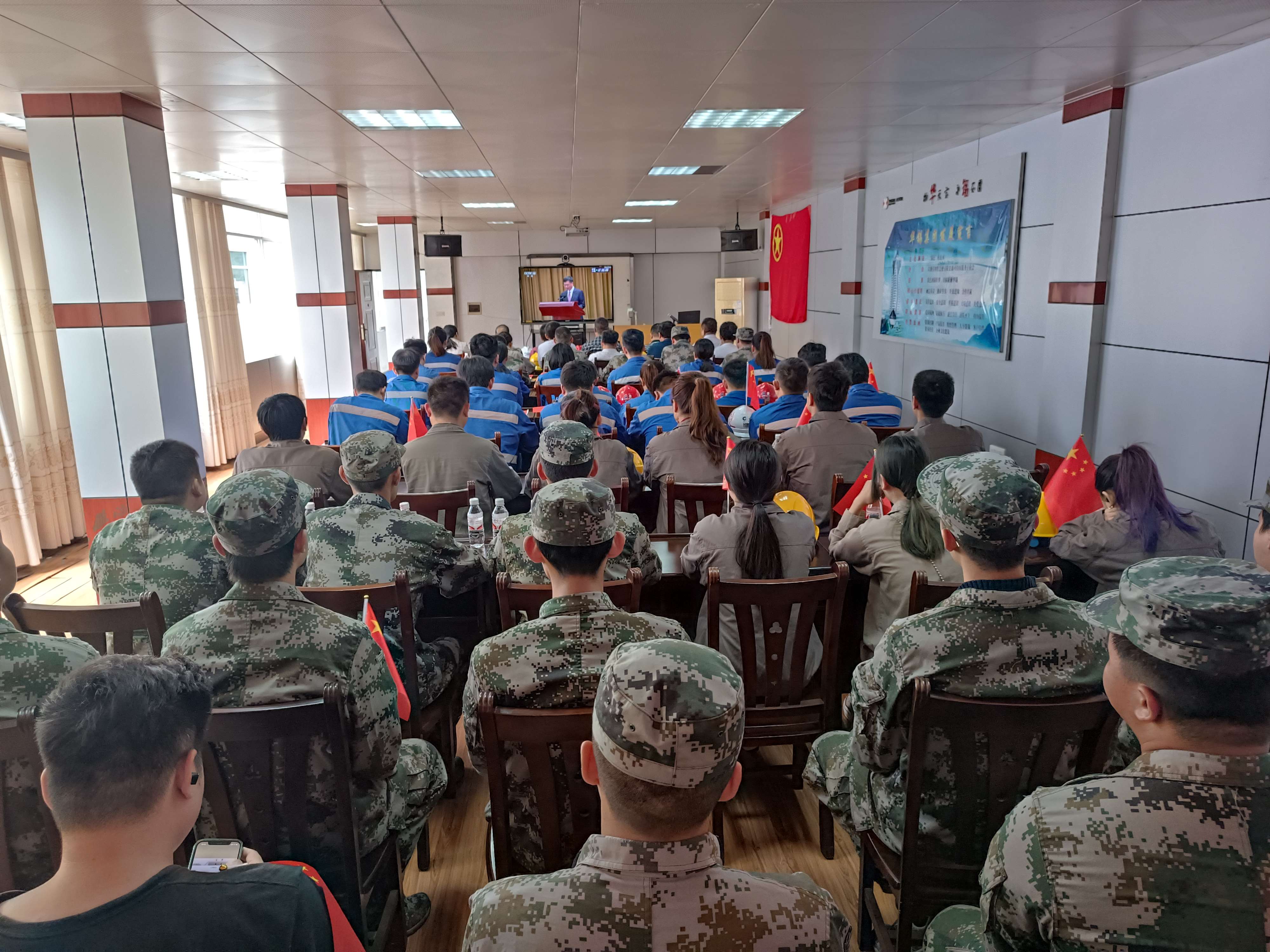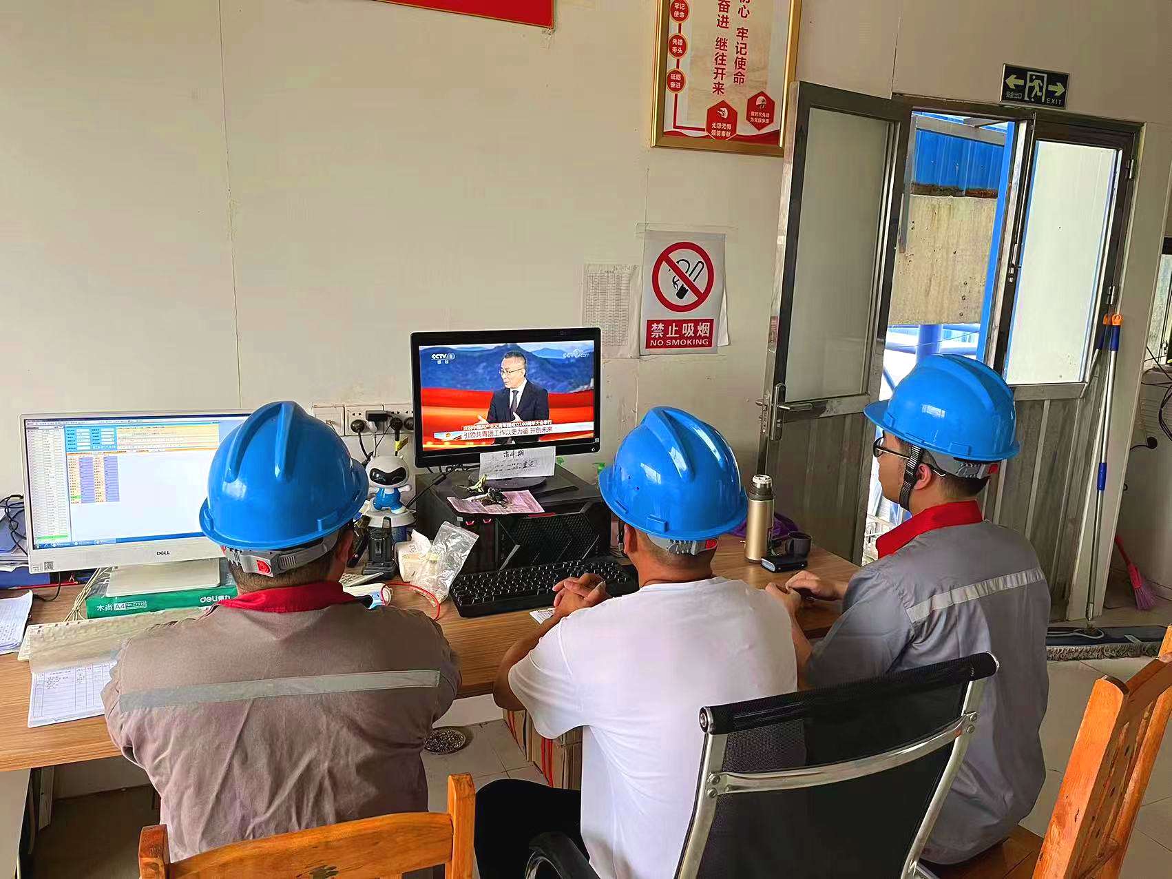 八桂监理现场监理人员观看建团100周年大会。