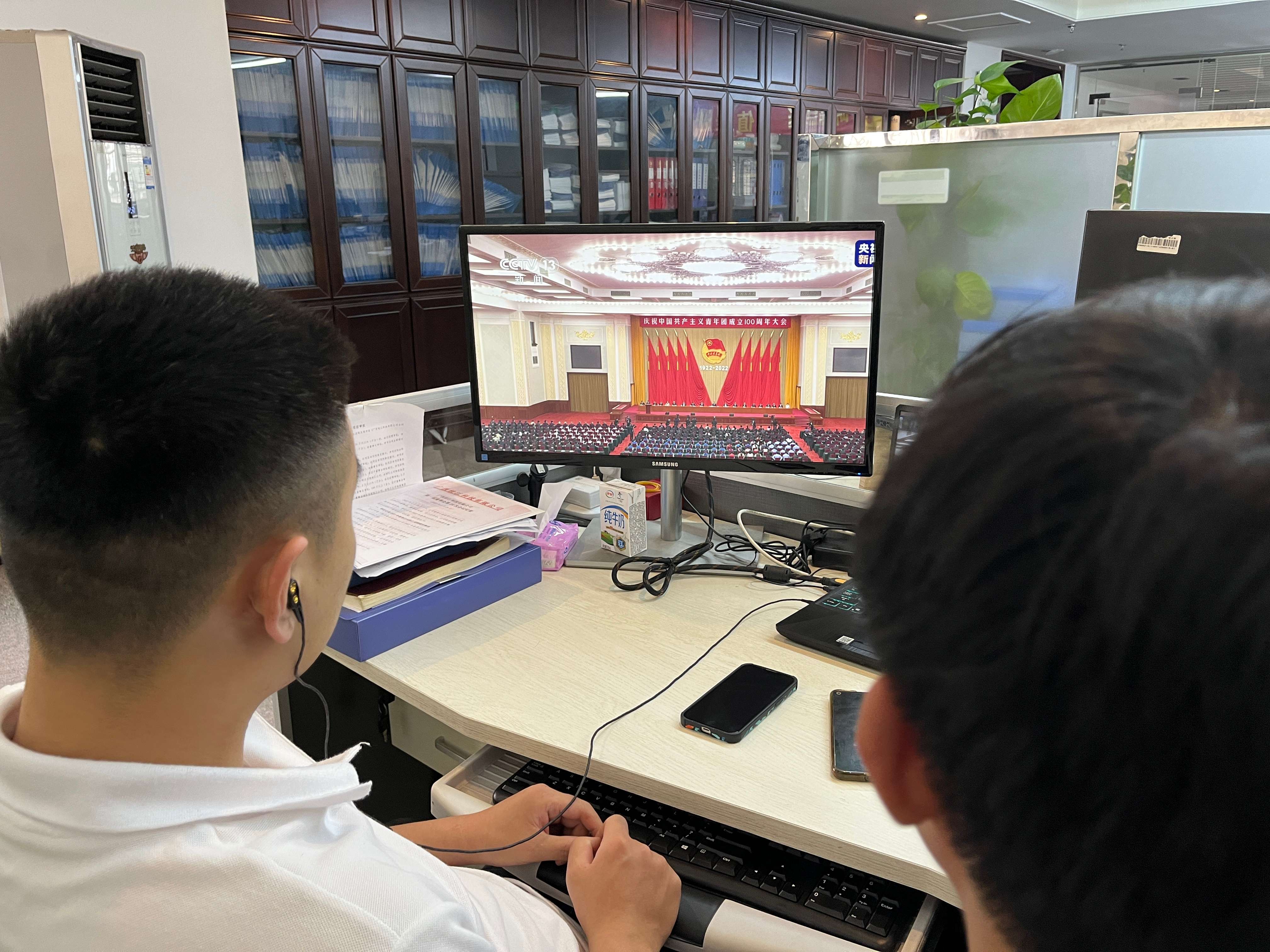 上午10点,北部湾港集团组织全体党员、团员、青年通过多种形式收听收看庆祝中国共产主义青年团成立100周年大会。