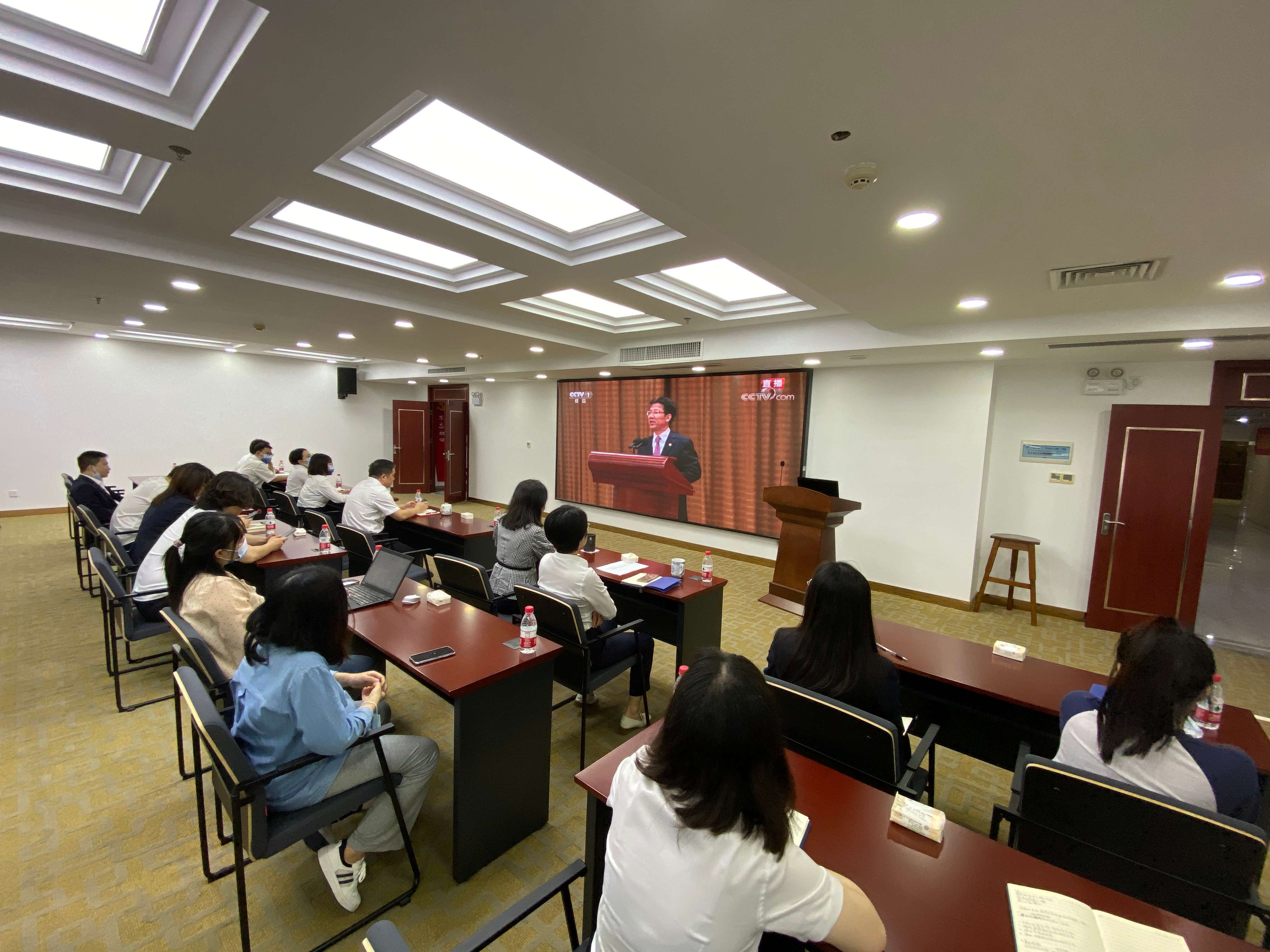 北港资源组织党员、团员收看直播。