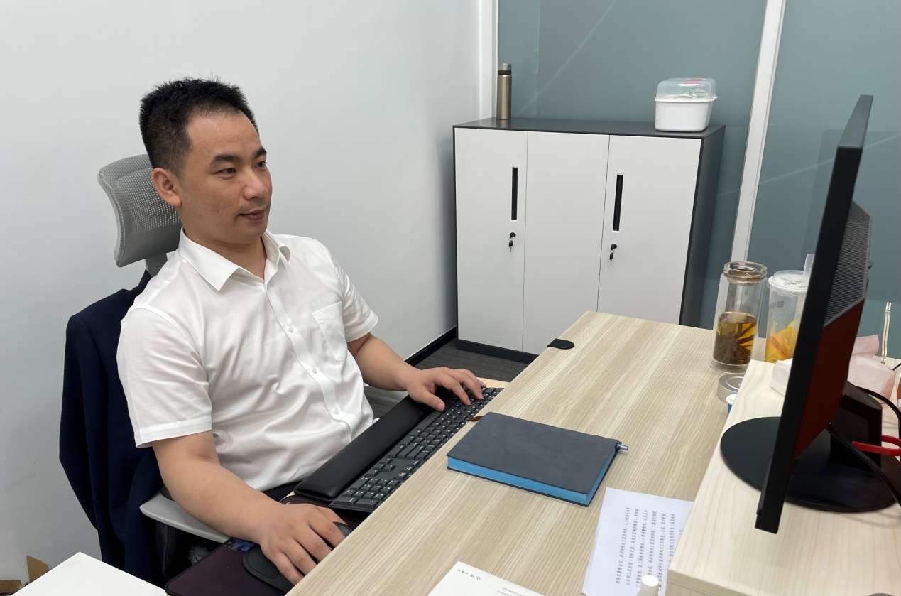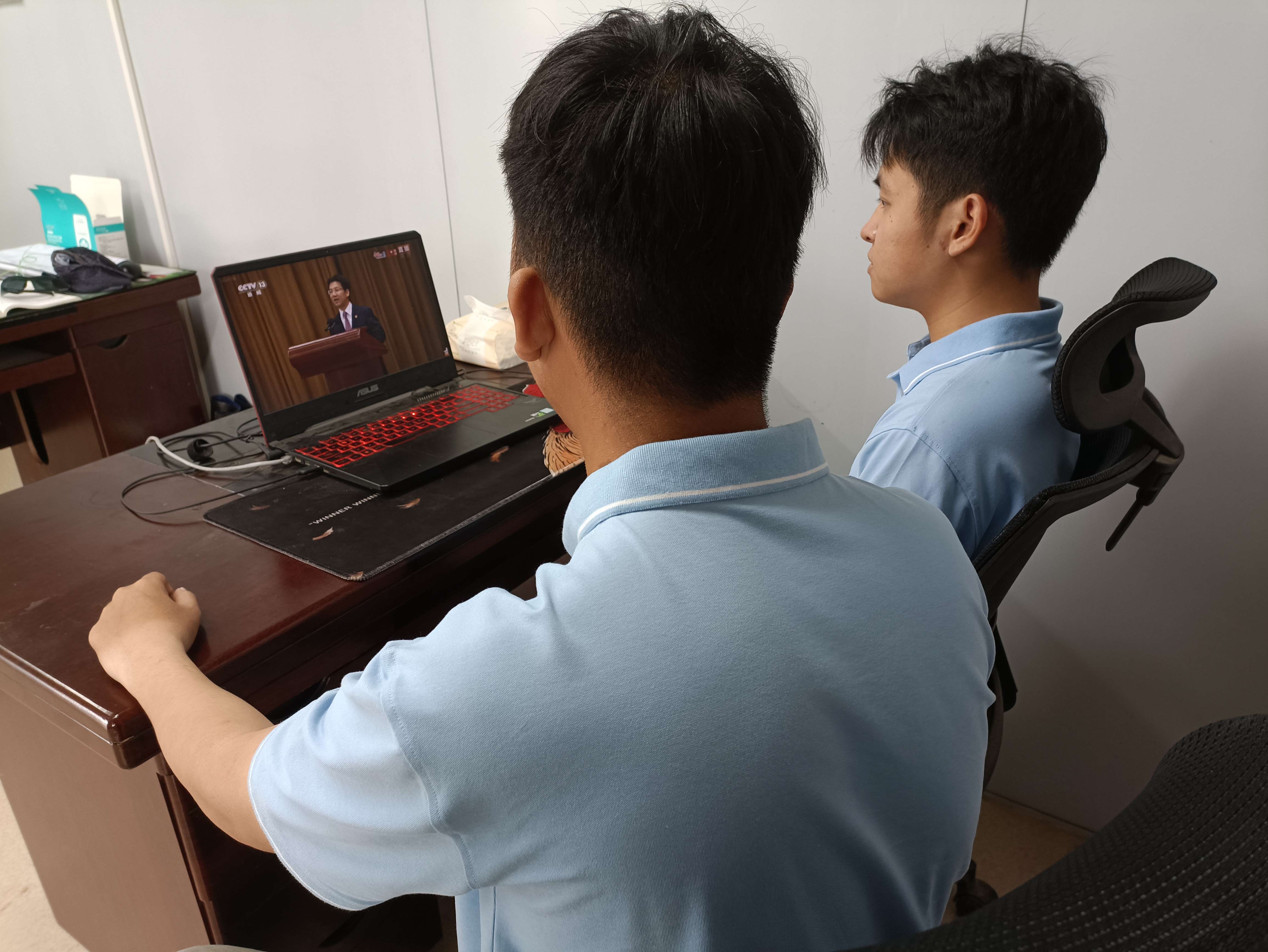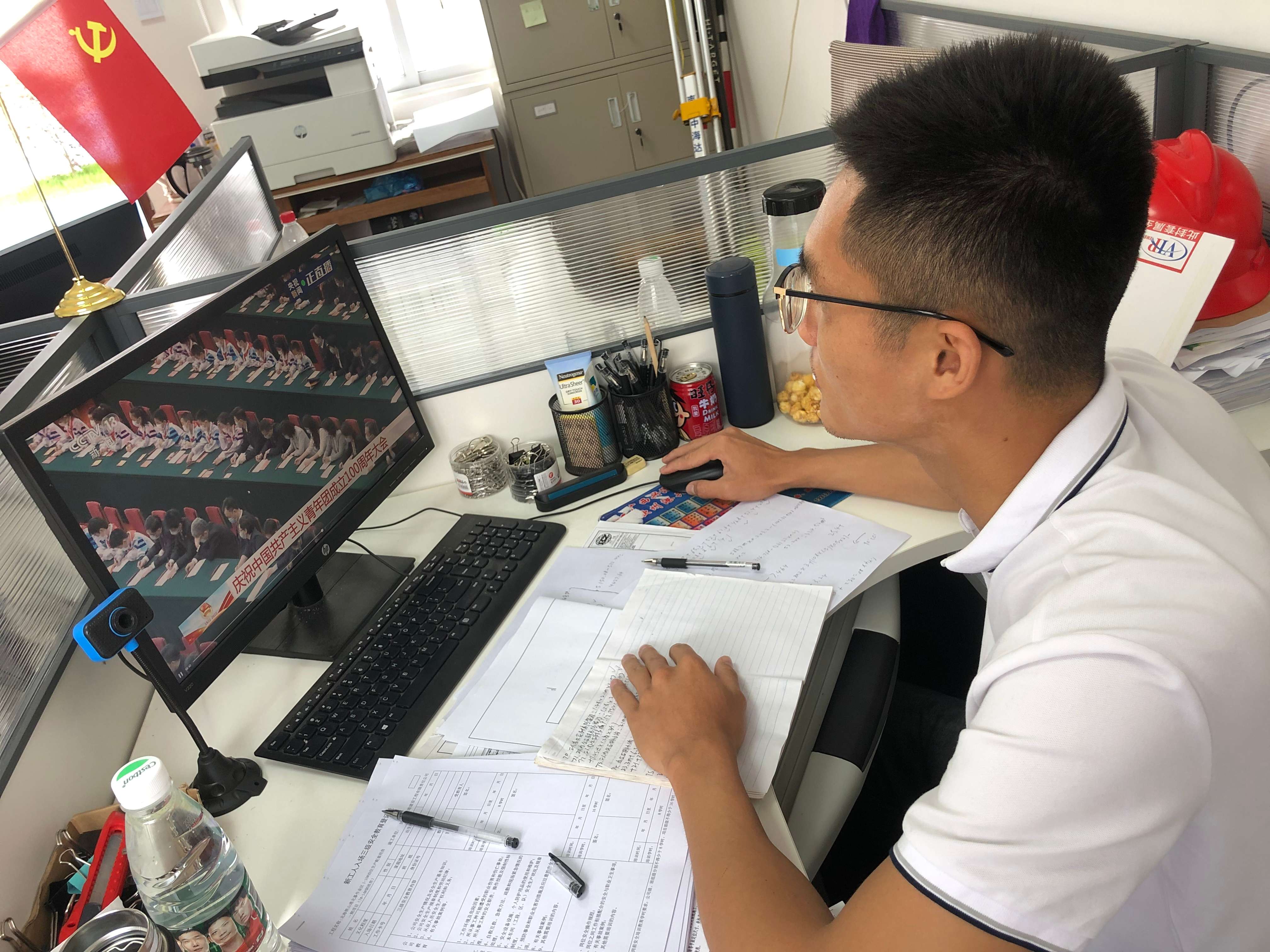 中港建司员工在工位收看直播。