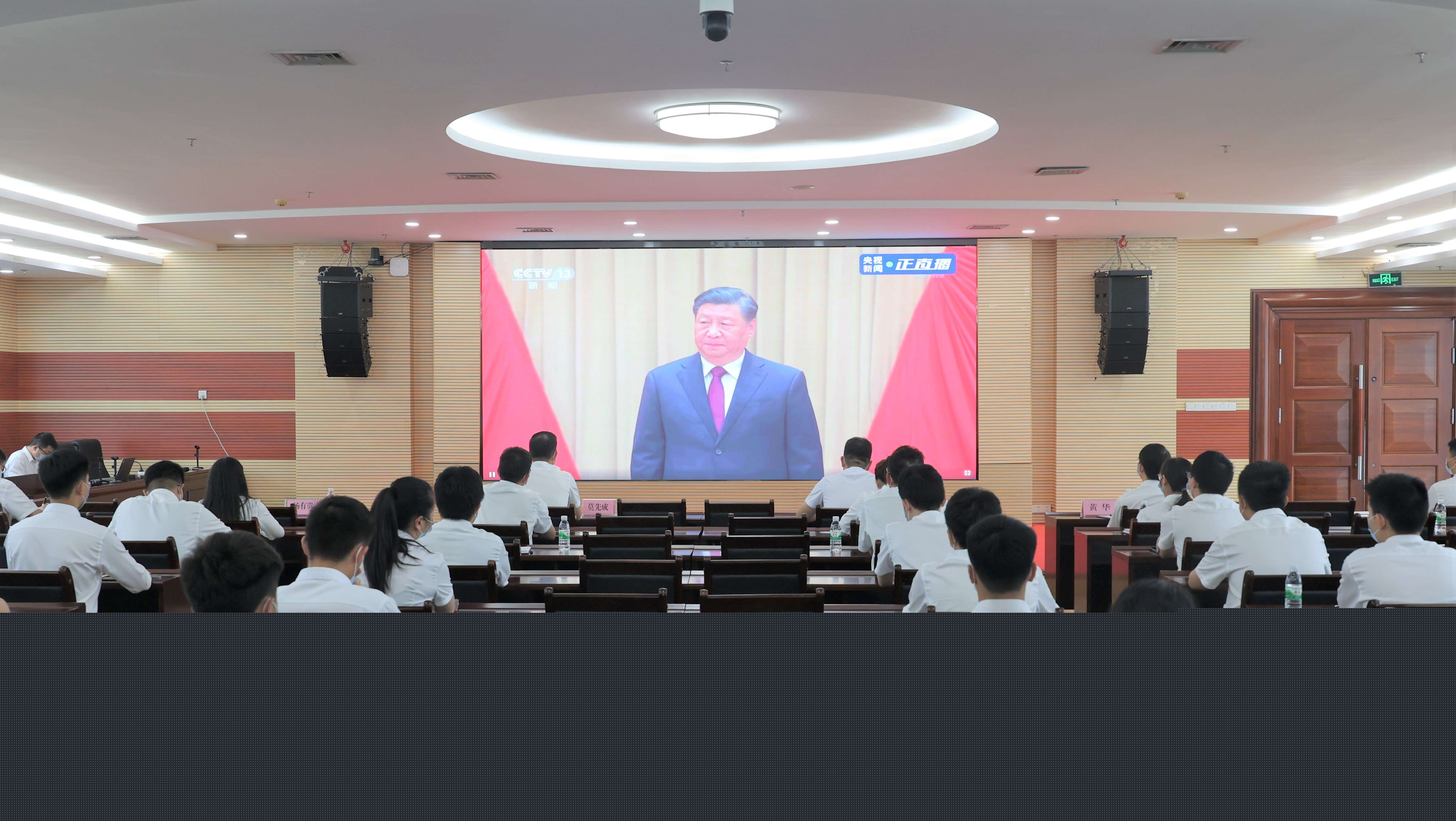 华锡集团高峰公司、再生资源分公司、保卫管理部分会场收看建团100周年直播。