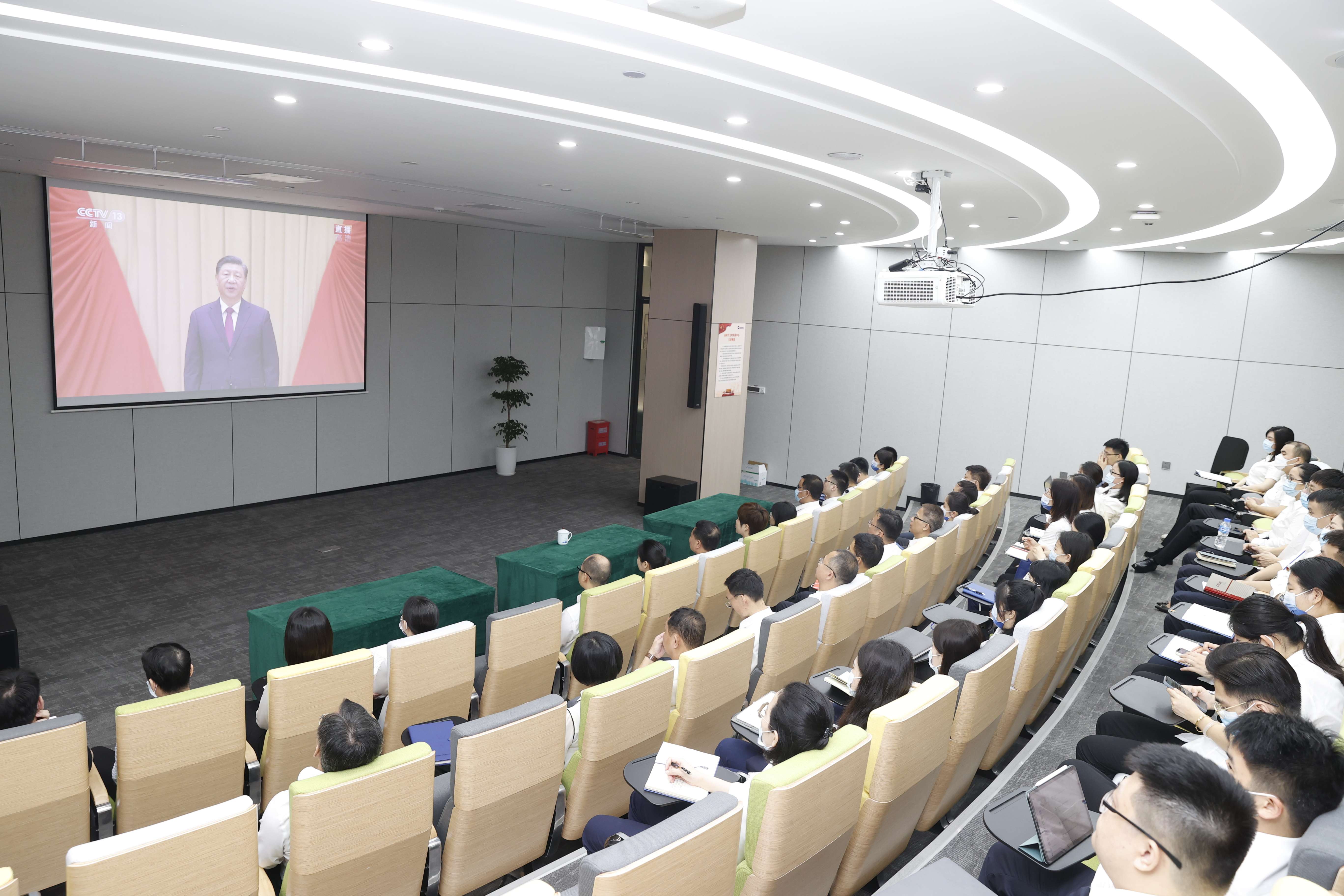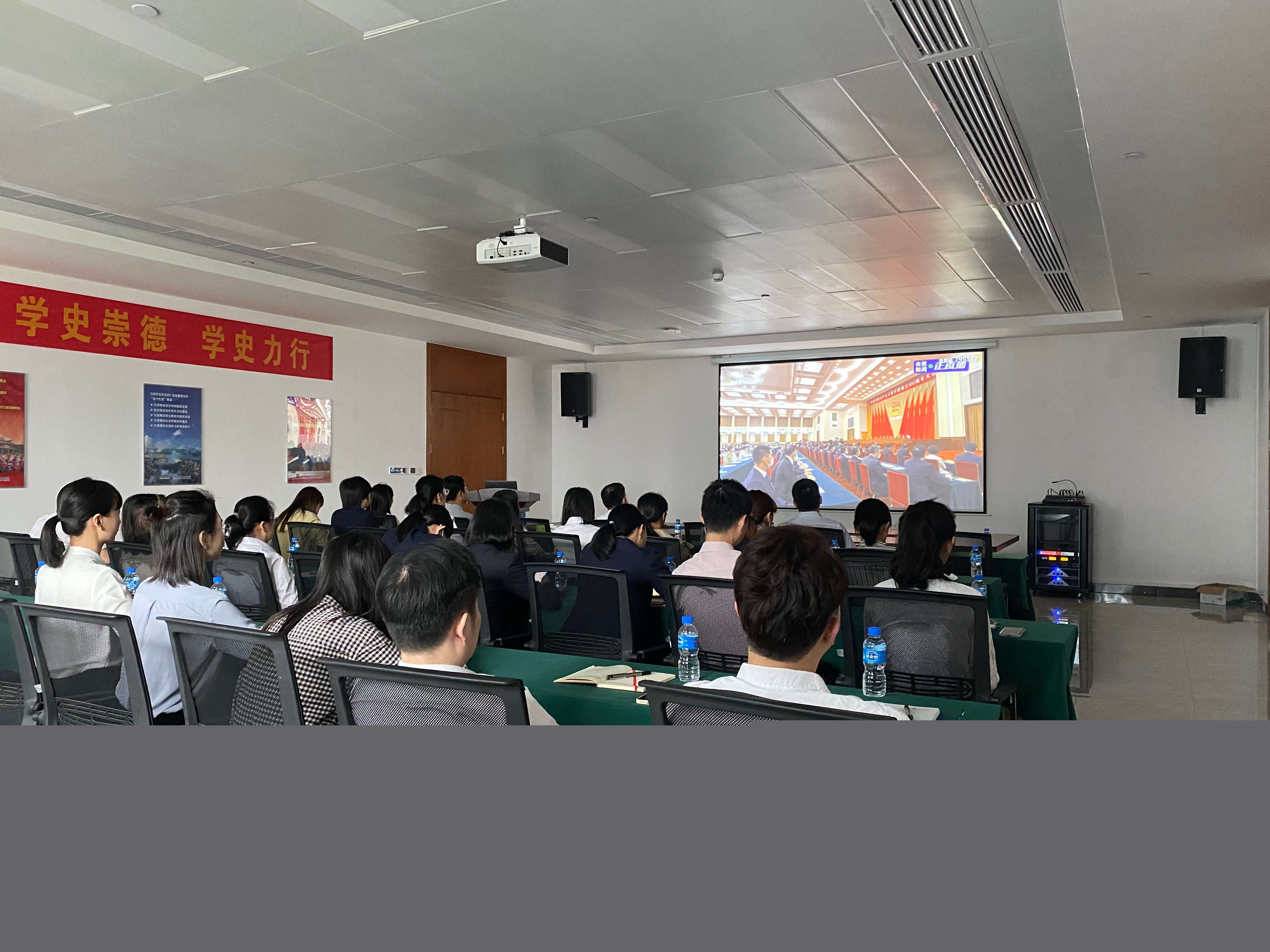 主会场北部湾港集团党员、团员代表在北部湾航运中心联合办公空间3楼培训中心收看成立大会。