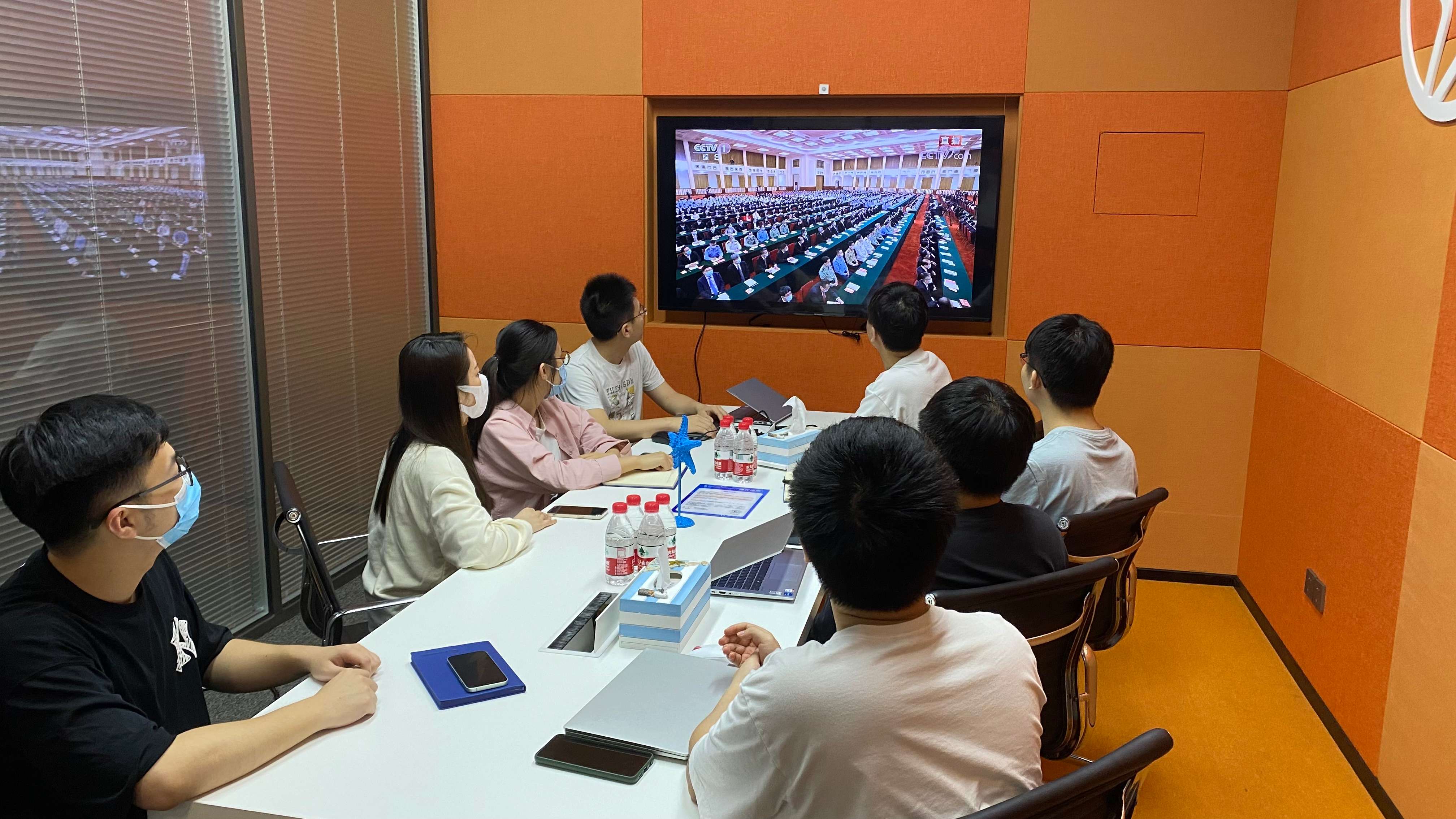 北港股份总部组织团员青年观看直播。