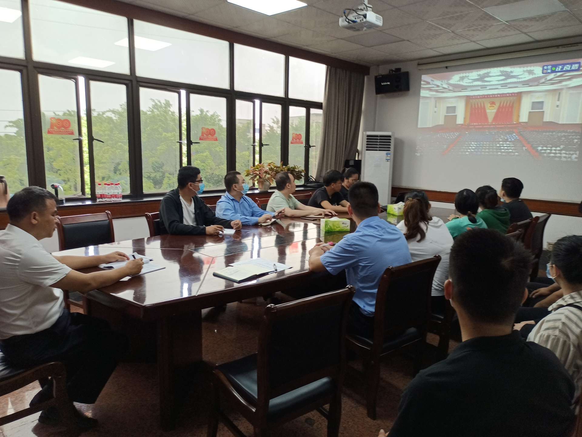 梧州投资公司生产部观看直播。