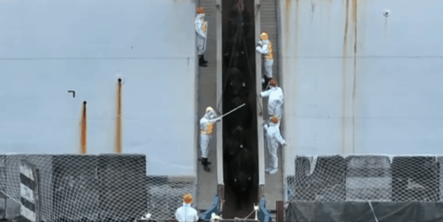 在多方协同配合下,该批种牛于当日17:45起陆续出舱装车发往崇左,成为该隔离场建成以来的首批客“牛”,预计5月24日中午完成整船卸牛工作。