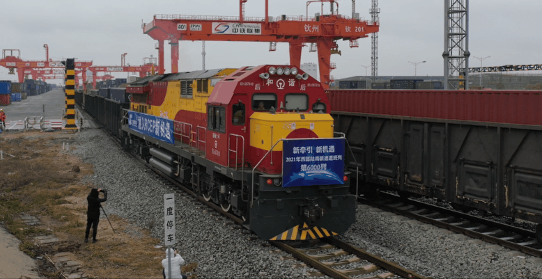 4月16日,双向对开陆海新通道“RCEP—北部湾港—河南”海铁联运班列。