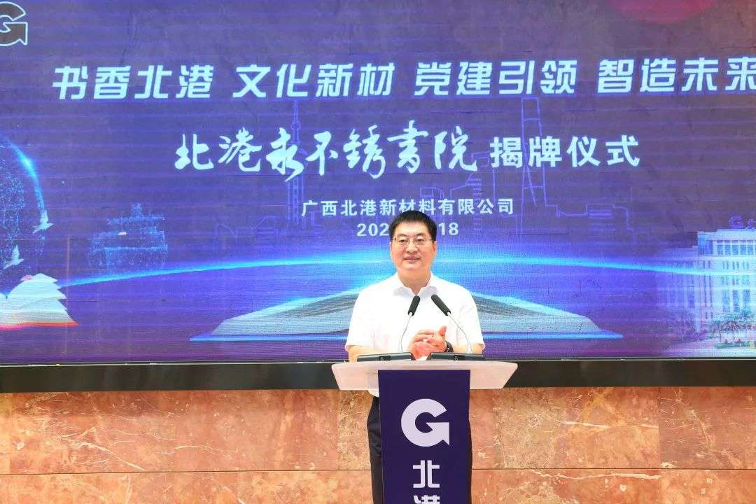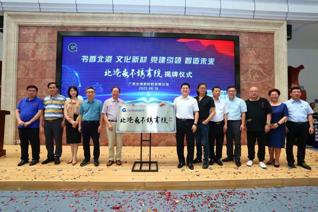 6月18日上午,北港新材料公司行政楼大厅高朋满座、乐曲悠扬、礼花飞舞,“北港永不锈”书院揭牌仪式隆重举行。