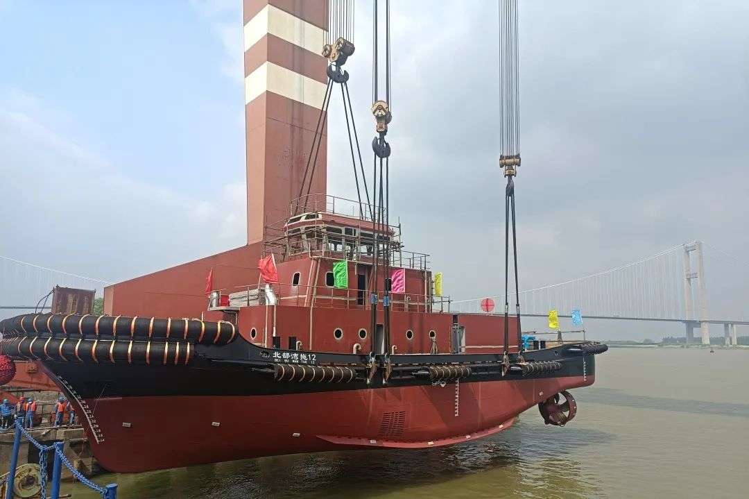 江苏镇江船厂北部湾港新建造拖轮下水仪式