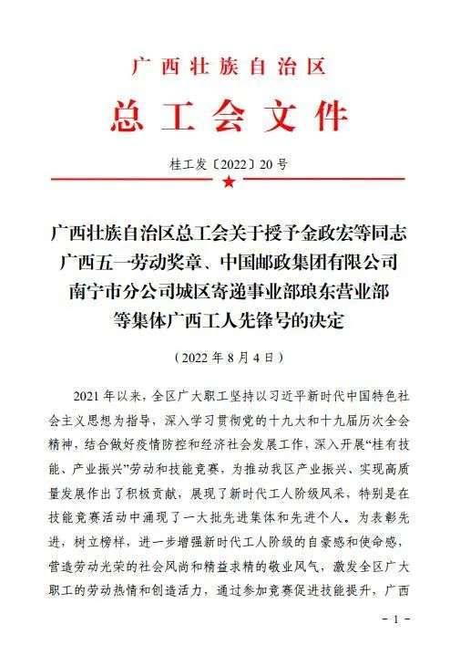 本次全区获广西五一劳动奖章共有97人,他们都是来自广西各行各业有突出代表性的先进个人。何明远和冀温源、宾进宽这3名了不起的北部湾港集团同事能够获此殊荣,意义非凡,其精神更是值得我们赞颂和弘扬。