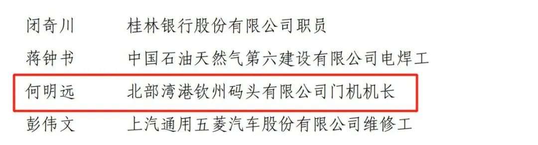 近日,自治区总工会公布了广西五一劳动奖章名单。北部湾港集团何明远、冀温源、宾进宽等3人榜上有名,荣获“广西五一劳动奖章”称号。