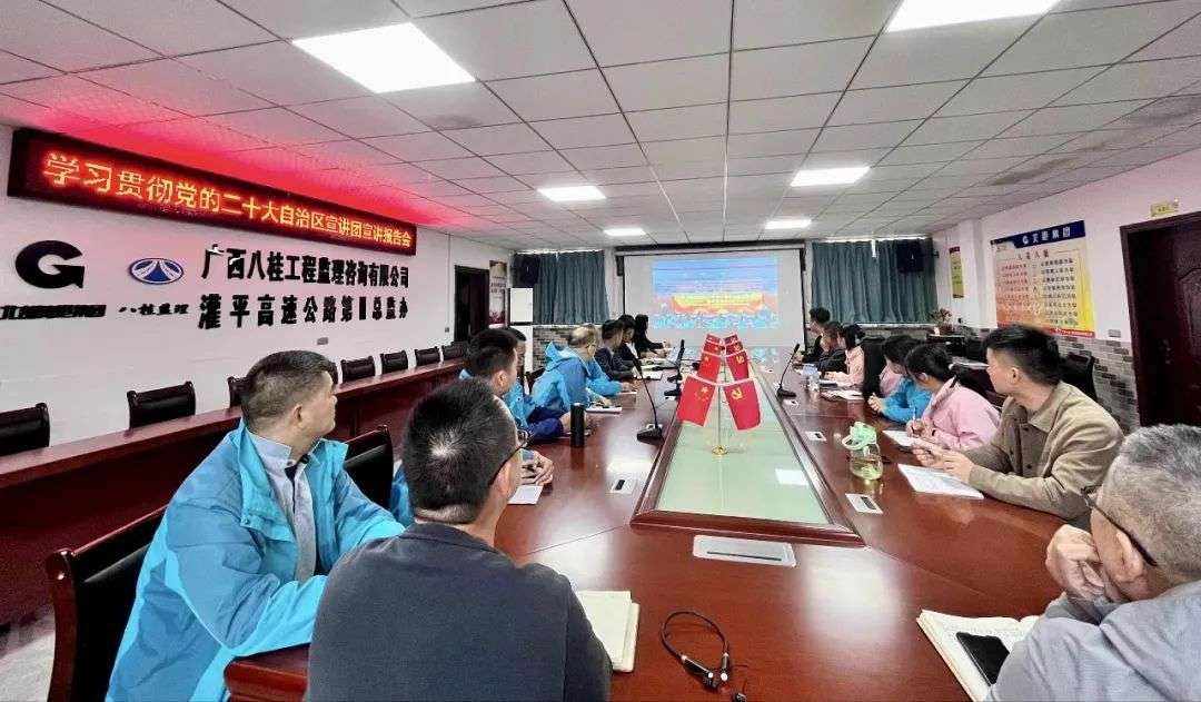 八桂监理灌平路总监办组织党员干部职工在项目驻地收看宣讲会