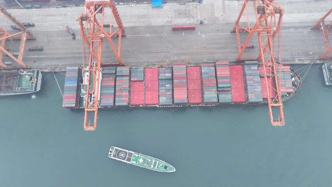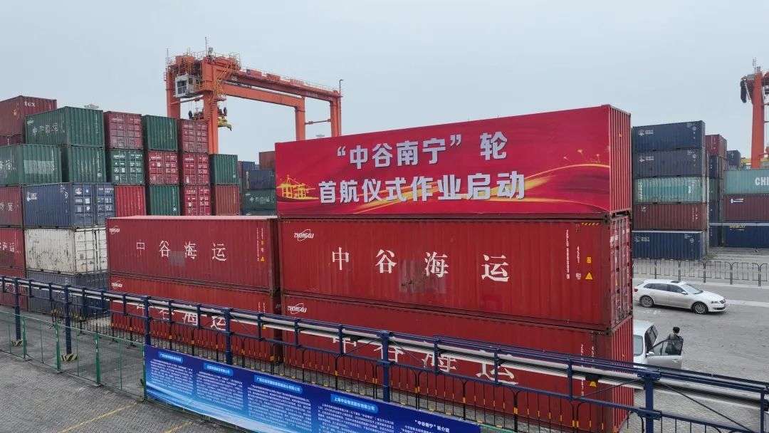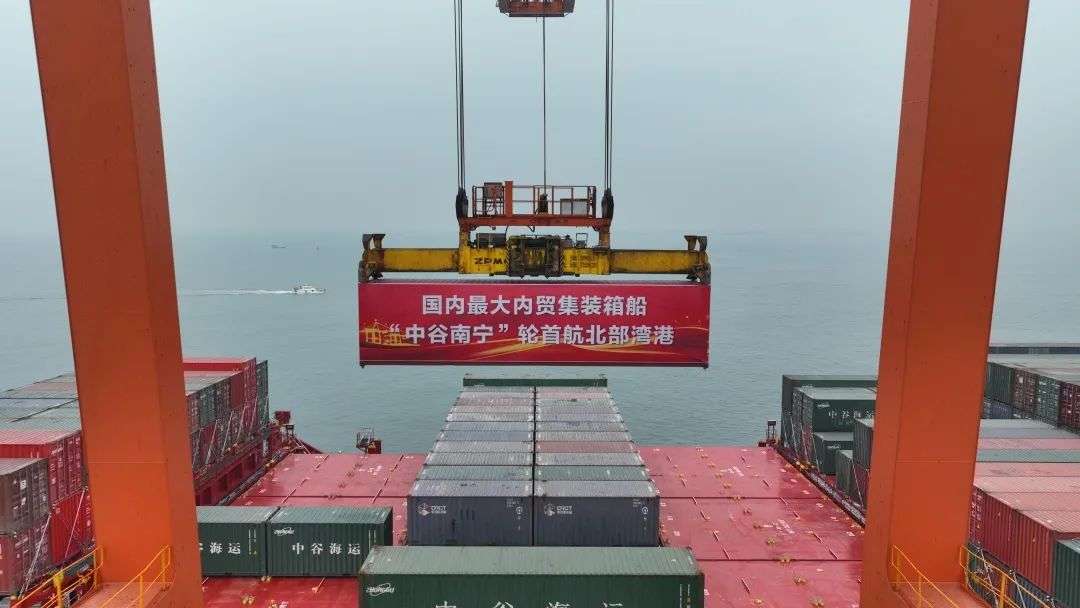 国内最大内贸集装箱船舶“中谷南宁”轮首航北部湾港