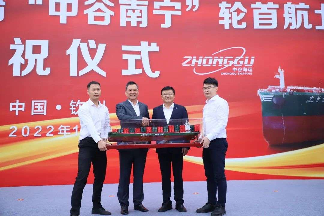 南宁海关、广西海事局、自治区交通运输厅、钦州市相关部门及自贸区钦州管委会相关领导,客户代表等参加首航仪式。