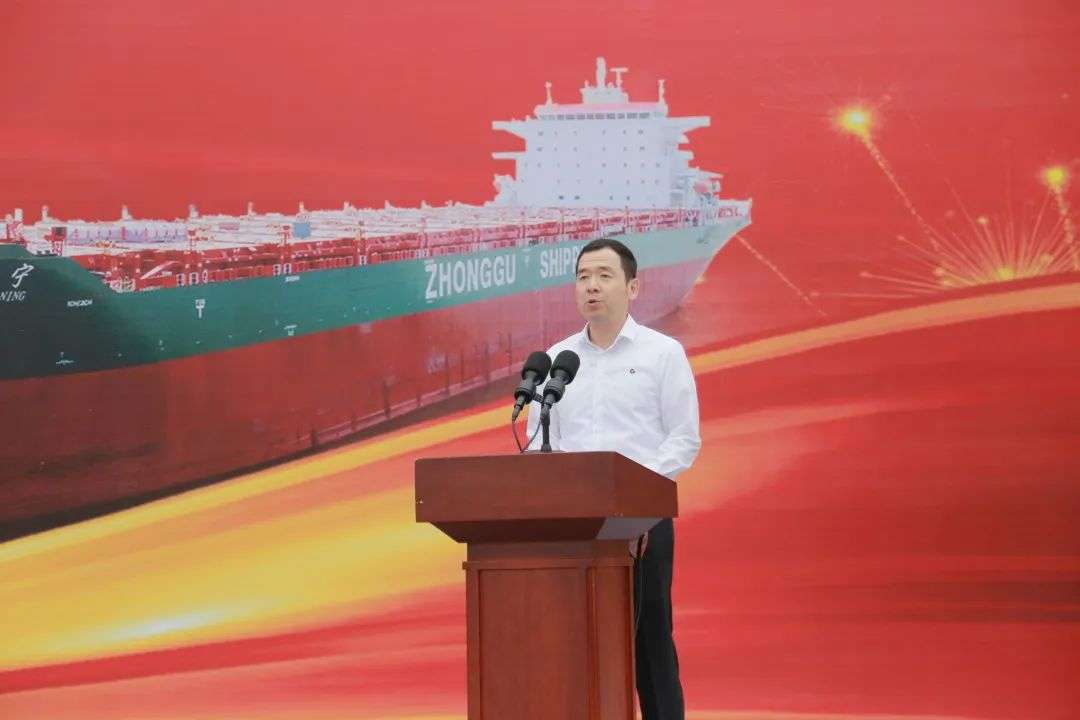北部湾港集团党委委员、副董事长、副总经理 黄葆源在致辞中表示,中谷海运将其命名为“中谷南宁”轮,11月7日船舶下水后,满载货物奔赴千里首航北部湾港,它的到来,充分体现了中谷海运对北部湾港的高度重视和信任支持,彰显了对西部陆海新通道未来发展的坚定信心,推动中谷海运在北部湾港的常态化运力实现新突破,是北部湾港集装箱干线运输服务网络得到进一步完善、港口服务能力和核心竞争力进一步提升的重要体现,对巩固西部陆海新通道北部湾国际门户港、国际枢纽海港的战略地位具有十分重要的意义。
