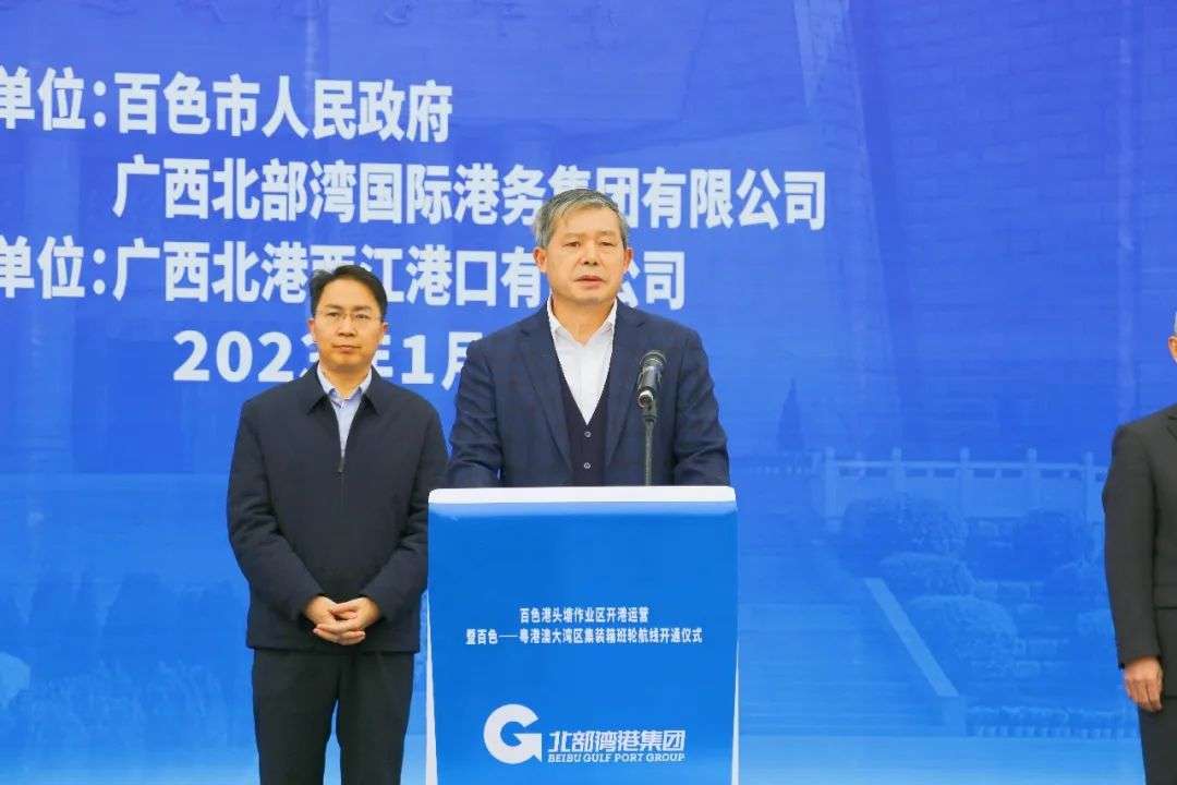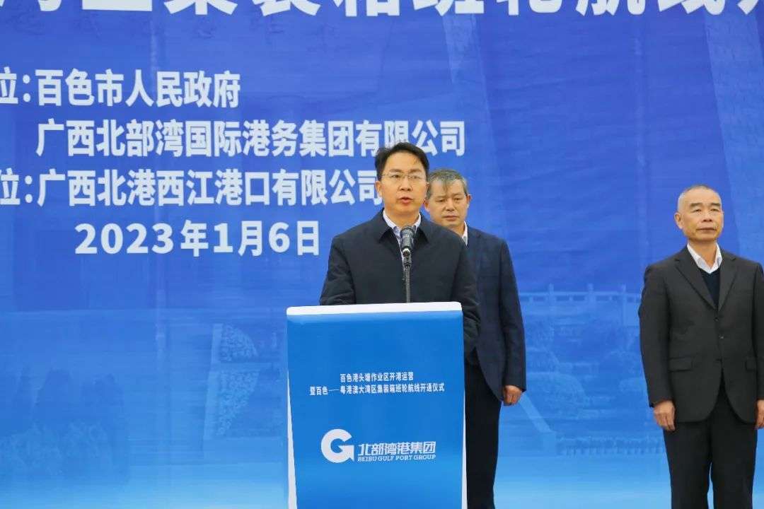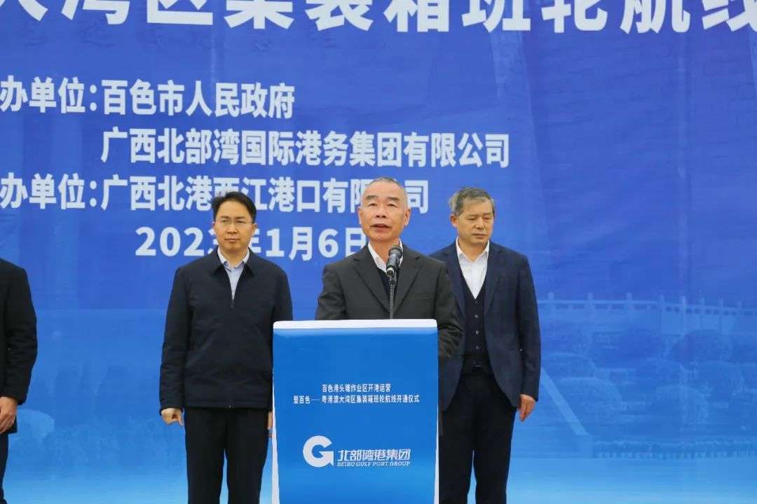 1月6日上午,百色港头塘作业区开港运营暨百色-粤港澳大湾区首条集装箱班轮航线开通仪式在百色市举行。