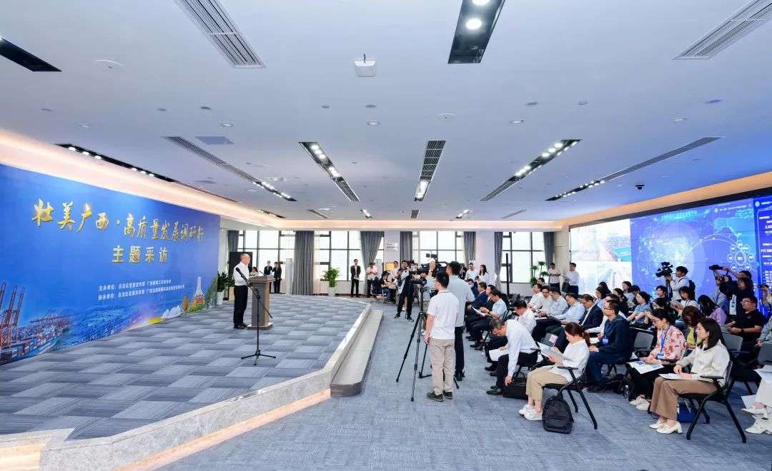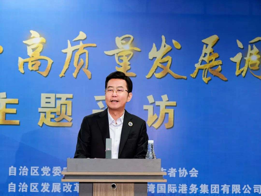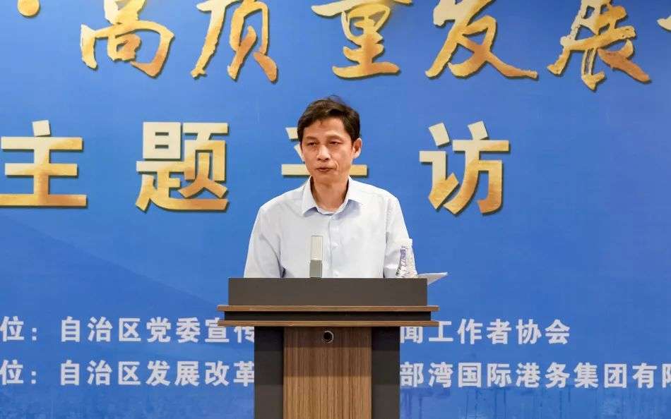 4月17日,由自治区党委宣传部、广西新闻工作者协会主办,自治区发展改革委和北部湾港集团协办的“壮美广西·高质量发展调研行”主题采访在北部湾港集团启动。