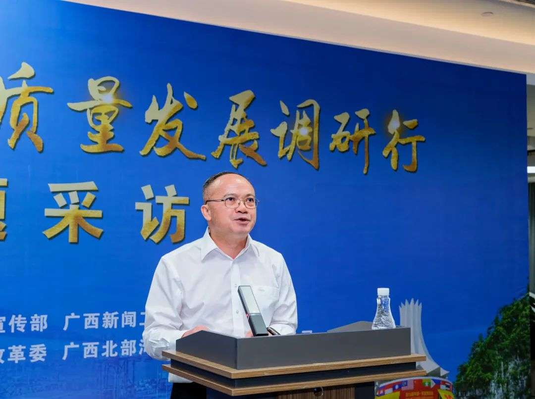 他希望,自治区有关单位和广大媒体朋友未来能给予北部湾港集团更大支持,共同讲好北港故事、传播好北港声音。为深入贯彻落实好习近平总书记对广西提出的“五个更大”重要要求和对北部湾港提出的“四个一流”重要指示精神,加快建设新通道和门户港,全面展现我区高质量发展成果,为建设新时代壮美广西作出新的更大贡献!