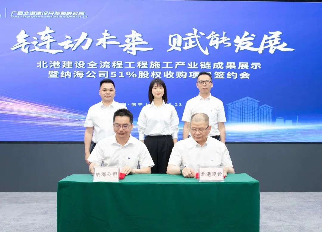 5月23日上午,北部湾港集团下属子公司北港建设举办的北港建设全流程工程施工产业链成果展示暨纳海公司51%股权收购项目签约会在南宁举行。