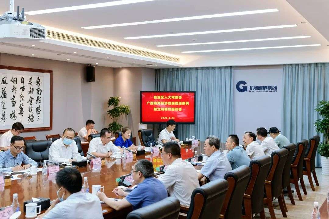 5月23日下午,自治区人大副主任刘有明一行到北部湾港集团调研,并组织自治区相关部门和企业在北部湾航运中心召开座谈会,就广西向海经济发展促进条例预立项工作开展调研座谈。