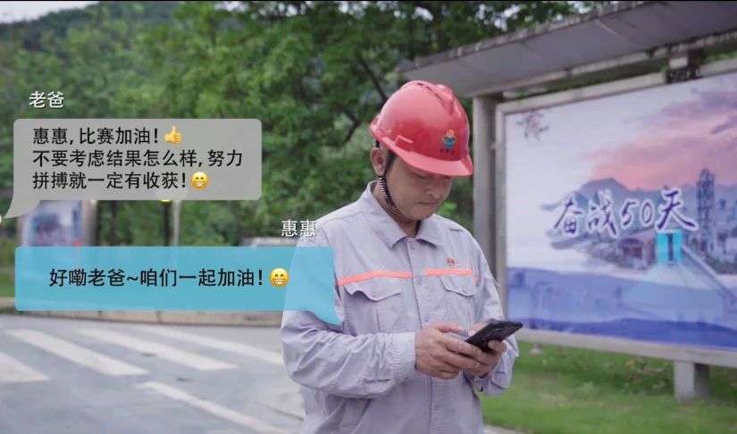 而此时,因为比赛一时落败在场边修整的女儿,却收到了母亲发来的父亲正在抢修的视频,看着画面中满身泥浆却依然坚定的父亲,她从父亲的尽责担当中感受到了那股不服输的劲头,重新坚定信心,在比赛中全力拼搏,最终夺得桂冠......