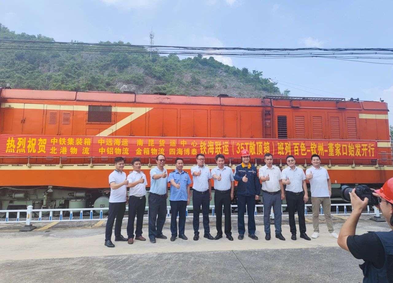 8月17日,一列满载石料的西部陆海新通道“百色—北部湾港—青岛”铁路敞顶集装箱班列,从广西百色那厘站货场驶出,经北部湾港钦州港出海销往山东青岛,标志着全国首列敞顶集装箱海铁联运班列“一箱到底”模式正式开启。