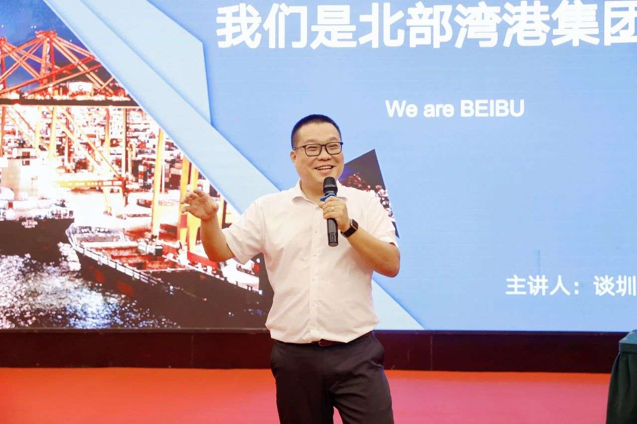 集团党委宣传部副部长谈圳为大家带来了《我们是北部湾港集团》,从我们是谁、我们从哪来、我们去向何方、我们的诗和远方几个方面,为大家带来了别开生面、生动有趣的一堂企业文化宣贯课。