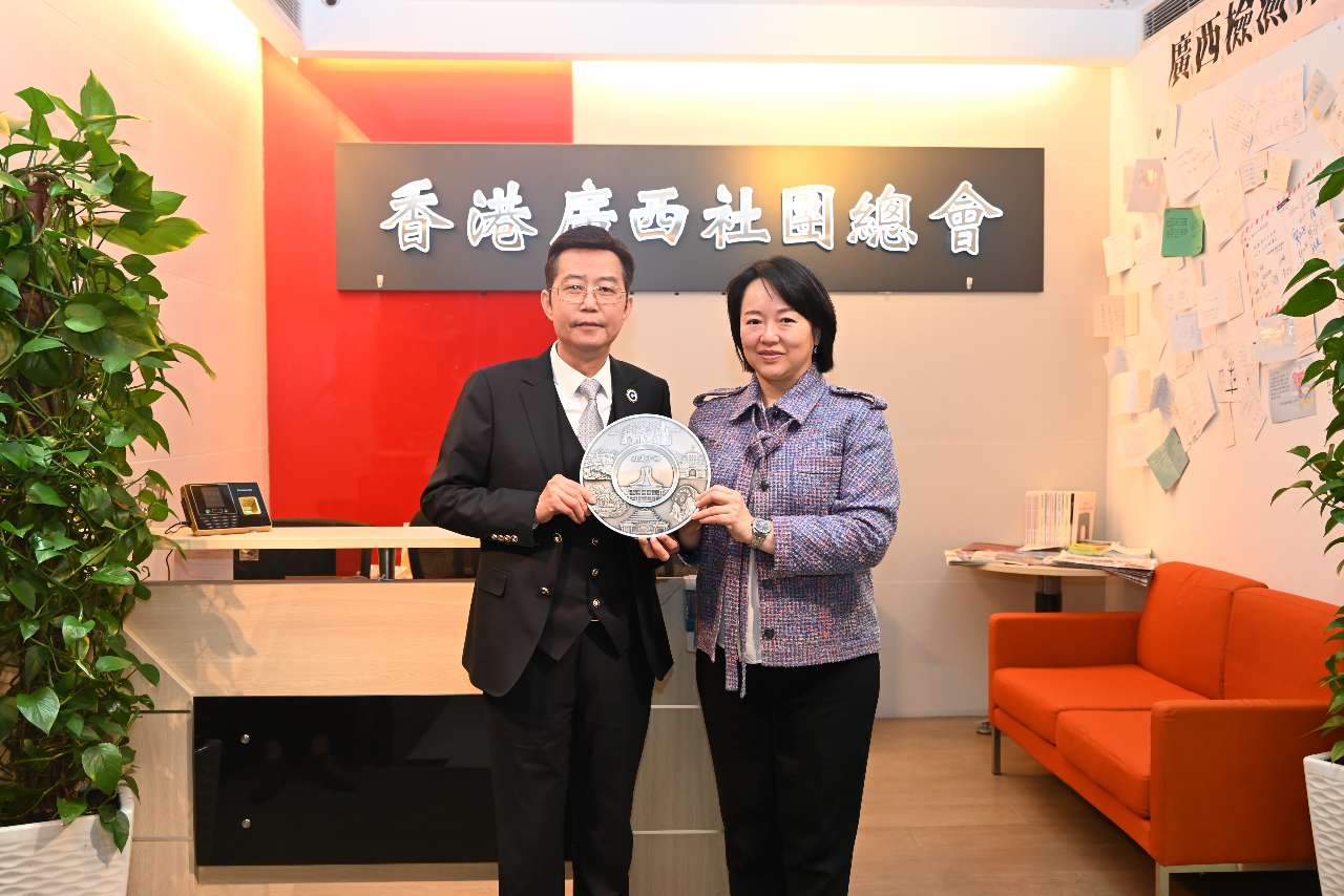 3月1日,周少波率队来到香港广西社团总会,与会长文颖怡座谈交流。