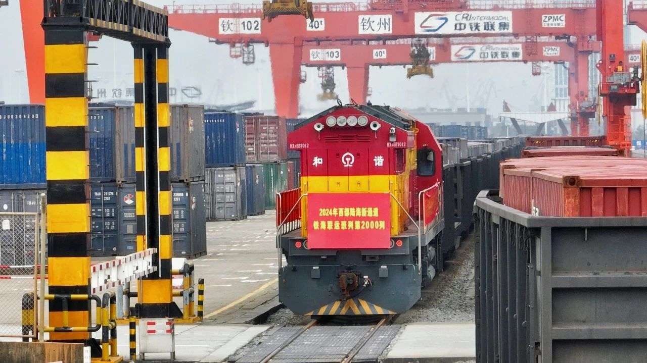 3月17日上午,一列满载缅甸黑芝麻、海南椰子汁、广西白糖等108个集装箱的海铁联运班列,从钦州铁路集装箱中心站缓缓发出驶向四川城厢站,这是2024年西部陆海新通道北部湾港海铁联运班列第2000列,至此,班列提前14天完成一季度班列开行任务,同比增长16.8%,实现2024年首季“开门红”。