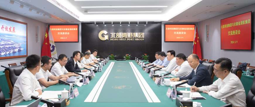周少波欢迎丁庆领一行的来访,他表示北部湾港集团是广西实施国家重大战略的平台,是西部陆海新通道、北部湾国际门户港和枢纽海港以及西江黄金水道建设的主力军。当前,集团正在贯彻落实广西铸牢中华民族共同体意识示范区、打造国内国际双循环市场经营便利地和粤港澳大湾区重要战略腹地“一区两地”区域经济发展战略。安徽省港航集团是安徽省整合港口、航道、航运、临港产业及相关资源的主要平台,承担着安徽省打造内陆开放新高地、参与上海组合港和长三角港口群合作分工的主体责任。双方从业务板块以及战略定位上都有相似之处,相互合作有着良好的基础和广阔的空间。周少波希望与安徽省港航集团继续加强沟通,取长补短,互通有无,进一步拓展物流、贸易、船闸、水电、建设等领域的深层次合作,共同促进双方业务高质量发展。
