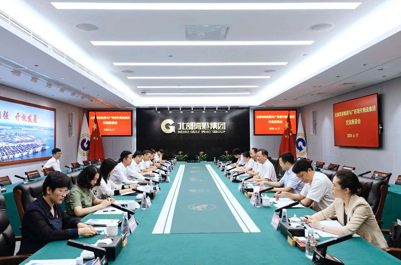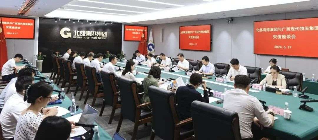 6月17日,北部湾港集团党委书记、董事长周少波在南宁北部湾航运中心会见广西现代物流集团党委书记、董事长覃黎魁一行。双方就土地利用开发合作、港口物流运输、物流信息平台建设、再生资源循环利用等方面进行了深入交流,达成合作共识。北部湾港集团党委副书记、副董事长、总经理刘胜友,现代物流集团党委副书记、副董事长、总经理杨亦龙,北部湾港集团副总经理向红参加座谈。