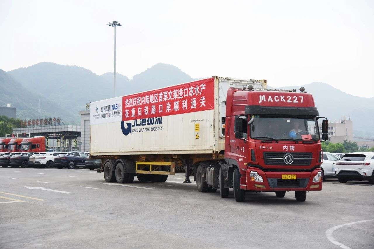 此次运输,由北部湾港集团旗下北港物流联合重庆陆海新通道运营有限公司,为客户量身打造“陆海联动、海公直运”物流方案,通过冷链监管车运输转至重庆团结村,首次实现文莱水产品在重庆进口清关。