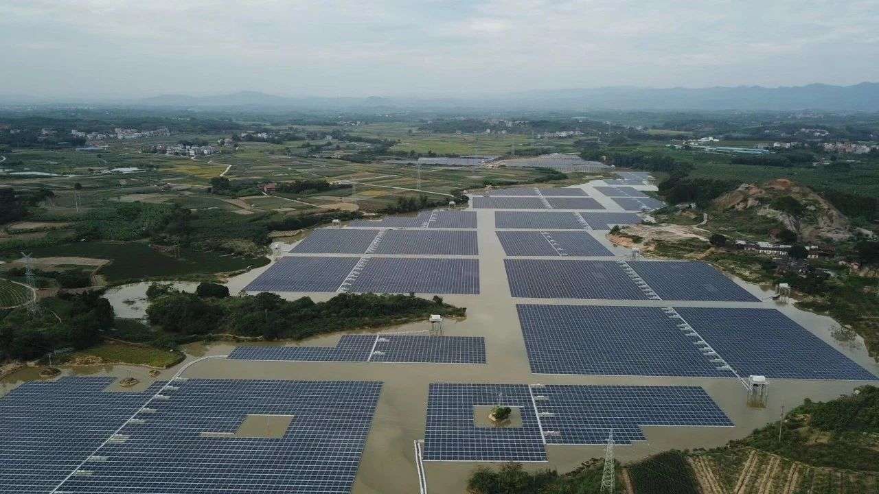 初夏伊始,八桂大地绿意浓。站在百色市田东县祥周镇新洲村的道路上可以看到,一排排湛蓝色光伏面板整齐漂浮于水塘上方,延伸至看不见的远方,全国最大的水面“光伏+扶贫”电站在阳光照耀下熠熠生辉。